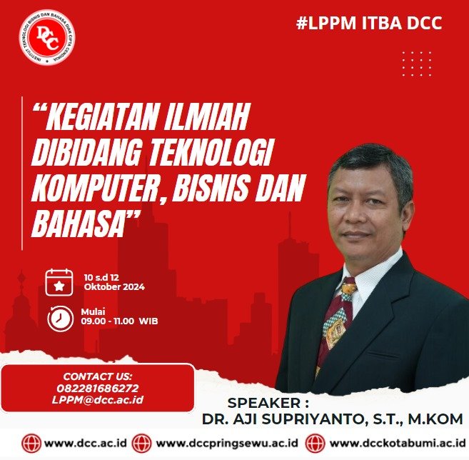 10 Okt 2024 Kegiatan Ilmiah Dibidang Teknologi Komputer, Bisnis dan Bahasa Admin Seminar 994 Views Webinar ITBA DCC mengangkat tema dibidang teknologi komputer, bisnis dan bahasa oleh Dr. Aji Supriyanto, S.T., M.Kom.