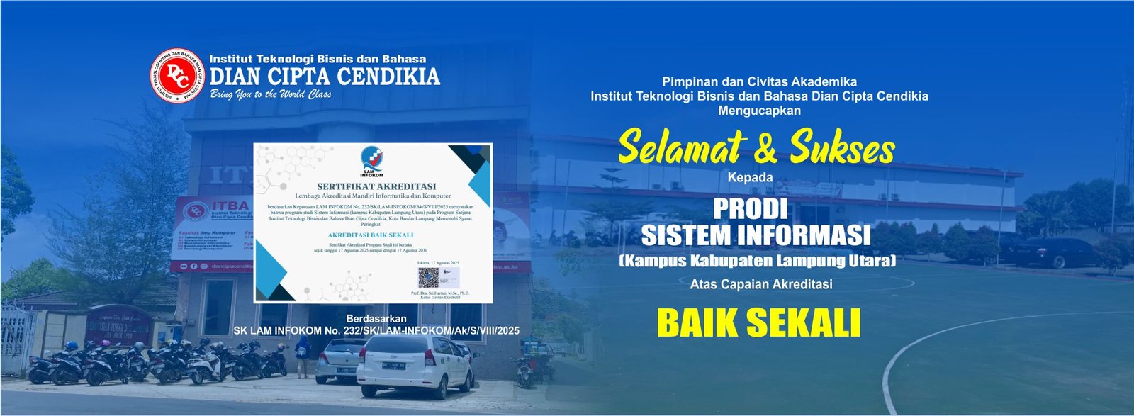 ITBA Dian Cipta Cendikia adalah salah satu Perguruan Tinggi Swasta (PTS) di Provinsi Lampung, berdiri pada tahun 2022, dibawah naungan Yayasan Dian Cipta Cendikia Lampung. Fakultas yang ada saat ini adalah Fakultas Ilmu Komputer, Fakultas Ekonomi dan Bisnis, Fakultas Bahasa dan Seni